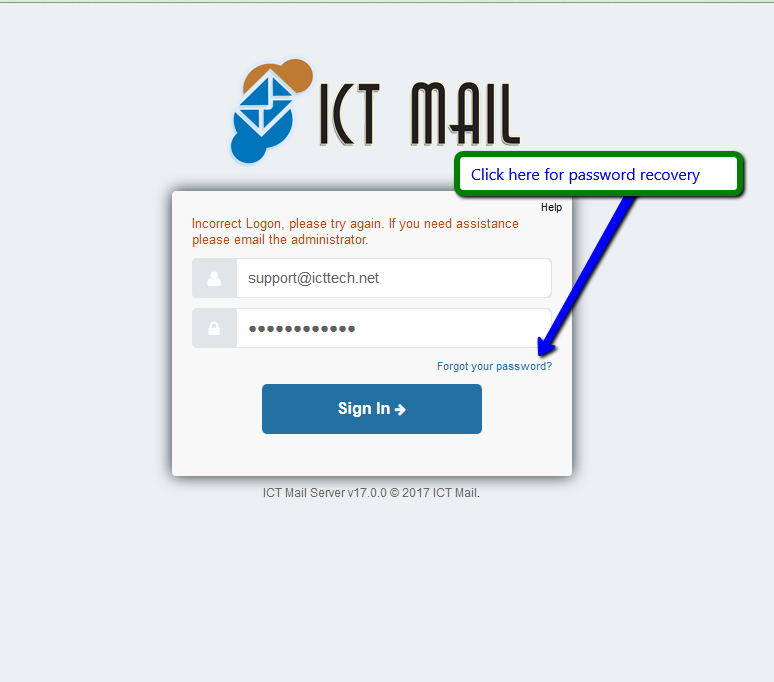 In order to use the password recovery procedure you must provide an alternate email by logging into your Webmail account and select Options & Security and then add the alternate email to send a link for recovery if lost or forgotten password. Once you have set your recovery alternative email then at any moment if you enter a wrong password or forgot your password you will be presented with a link for password recovery at logon after your first failed attempt.