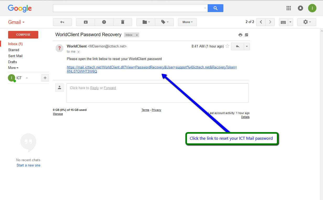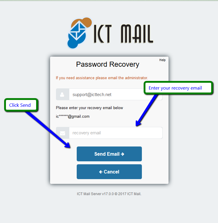 With the alternate email address you setup earlier, enter it in the field named "recovery email" then click the "Send Email" button.