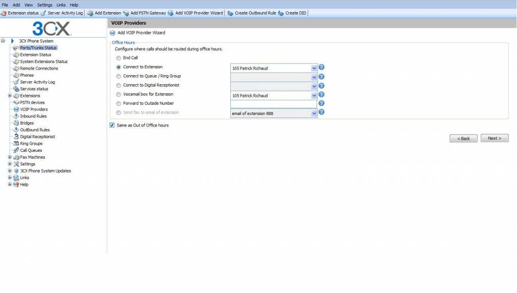 Now specify how calls from this VOIP provider should be routed. You can specify a different route outside office hours.
