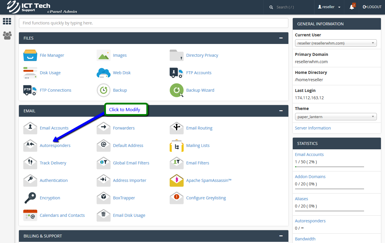 This demo assumes you've already logged in to cPanel, and are starting on the home screen.Then...