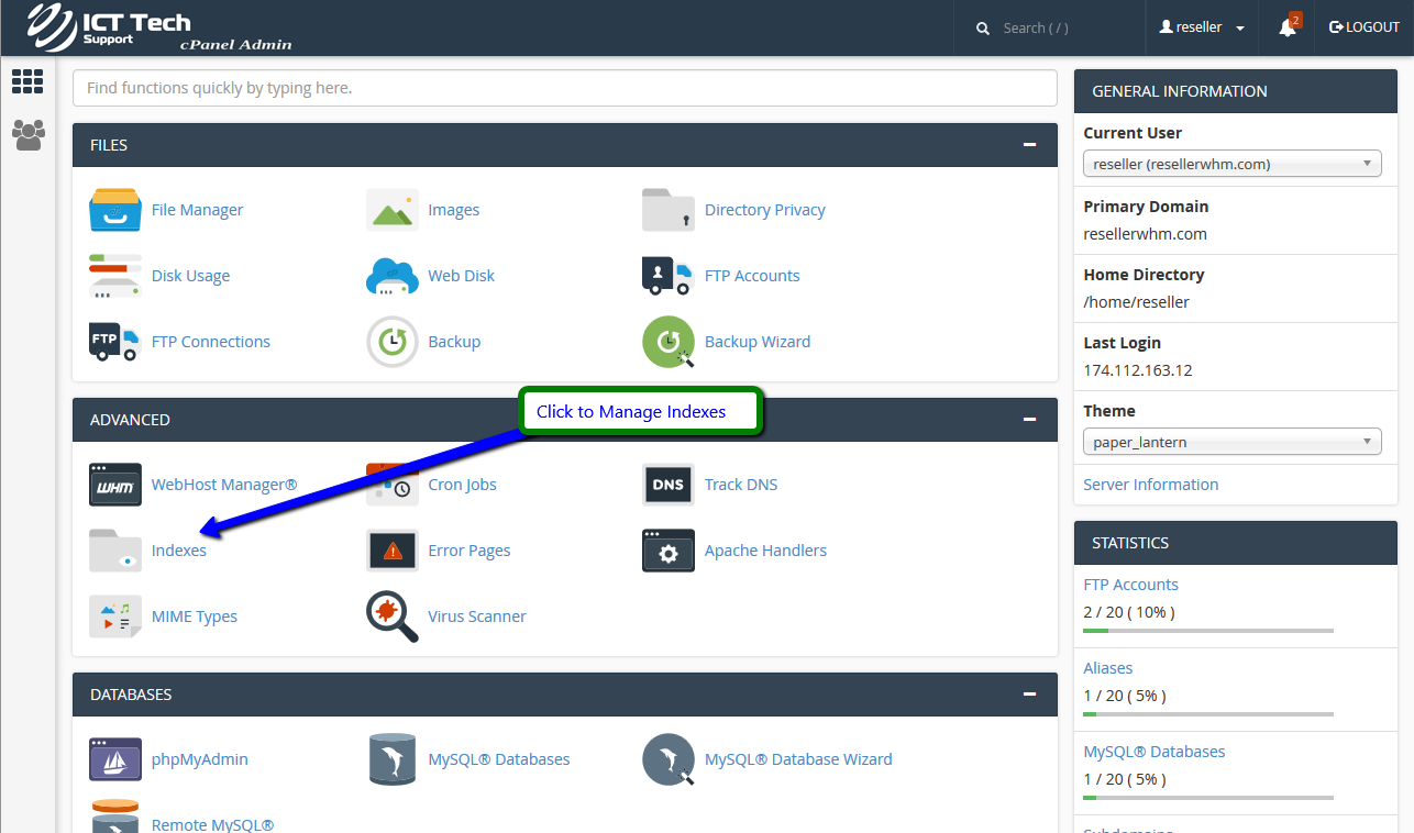 If there is no index.html file in a given directory, the contents of that directory will be listed in a browser. This can cause security issues. With Index Manager, you can set your account up to not allow your directory contents to be shown.