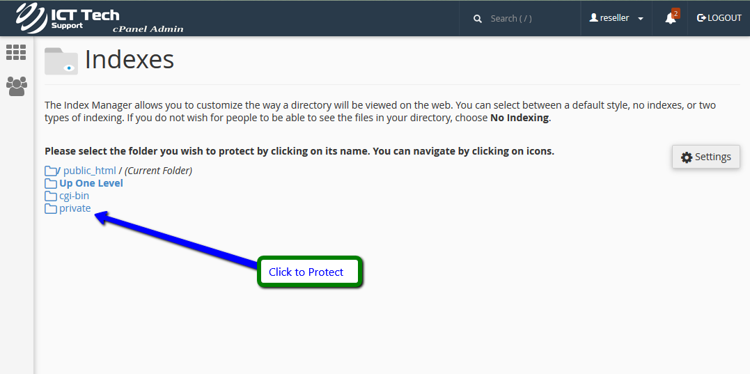 Let's setup Index Manager for the private directory.