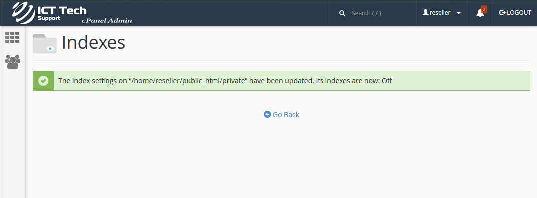 That's it! The index settings have been updated, and visitors can no longer view the contents of the private directory.